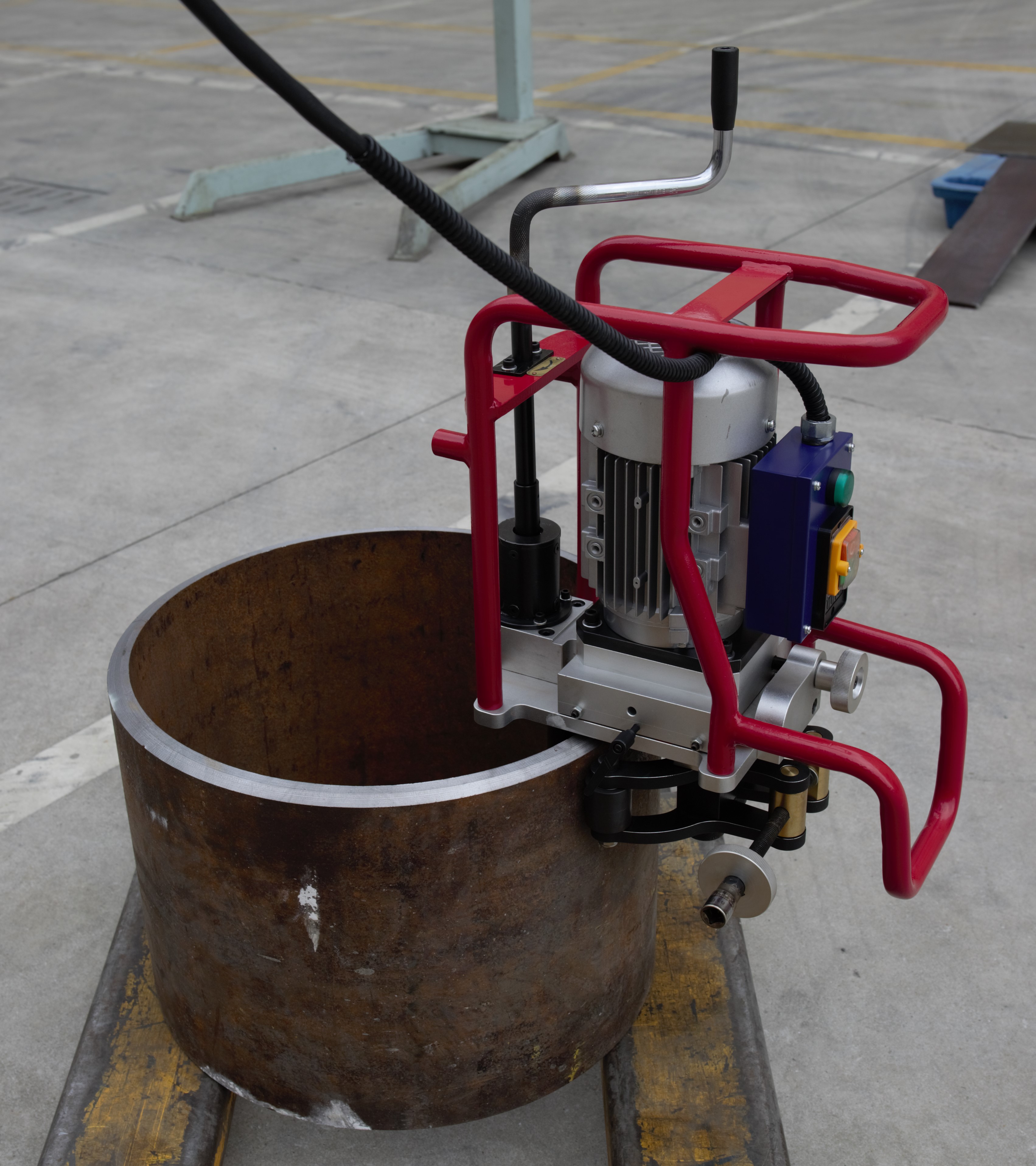 “CG1-2与CG1-2A”型便携式H型钢气体切割机是针对于大型的型钢切割而设计开发。本系列机主要由腹板切割机构、翼板切割机构、控制箱、气体分配器及割炬所组成。外壳主要由铝合金,各部件都由腹板切割机构相连。腹板切割机构内有减速箱,电机和离合装置,腹板切割机构是利用四只滚轮在轨道上运行。翼板切割机构安装在腹板切割机构一侧,四只滑轮支撑移动杆运用齿轮带动齿条上下垂直运动。该机器设计合理,便于检查、维修等特点。本系列机的所有操作都集中到控制面板上来实现。如四路控制开关、快速返回按钮、调速器、电源开关。即便是初学者,也能很快掌握。